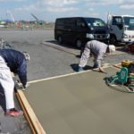 コンクリート床を鏝で押え仕上げます。また強度の具合では、フェロコン(材料)等を利用して工場床などに用います。